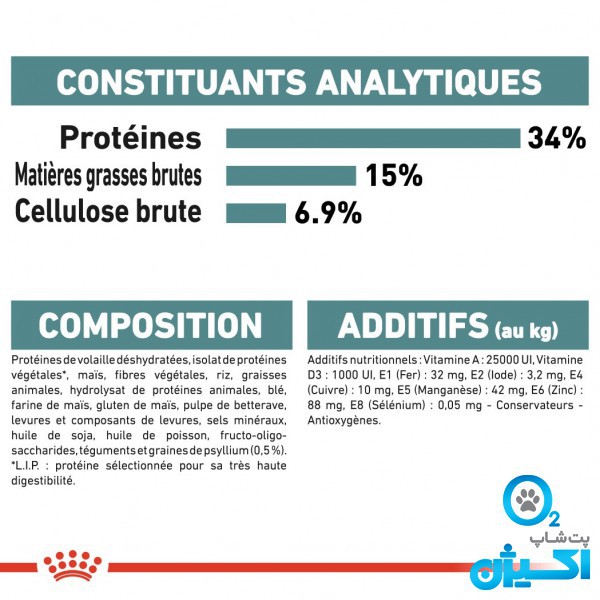 گربه ها روزانه حدود 30٪ از زمان بیداری خود را به نظافت و لیسیدن بدن خود اختصاص می دهند و 2/3 موهای جدا شده از بدنشان را بلعیده و در نیجه دچار هربال (گلوله های مو) در معده می شوند. زبان زبر گربه مانند یک برس عمل می کند و موهای مرده و ذرات موجود در موها را از بین می برد. موهای بلعیده شده یا شکسته شده و یا از طریق بدن همراه با مدفوع دفع می شوند. از بین بردن طبیعی مو را می توان با تخلیه معده و افزایش ترانزیت روده تقویت نمود. عوامل مختلفی سبب ایجاد حساسیت ها و در نتیجه تهدید سلامت گربه می شوند. مطالعات علمی و تحقیقات رویال کنین نشان داده است که تغذیه نقش مهمی در سلامت و پیشگیری از این بیماری ها دارد. غذاهای سری FELINE CARE NUTRITION رویال کنین به دقت فرموله شده اند و پاسخی هدفمند برای هر نوع حساسیت دارند. Hairball Care رویال کنین, حاوی تمام مواد مغذی ضروری که گربه شما برای افزایش سلامتی و شادابی خود نیاز دارد, می باشد. تأثیر مثبت این غذا در مطالعات علمی مستند شده است. ترکیبات: گوشت، ماکیان، برنج، آرد ذرت، الیاف گیاهی، گلوتن ذرت، چربی های حیوانی، پروتئین های گیاهی*، پروتئین حیوانی، مواد معدنی، تفاله چغندر، اسفرزه (پسیلیوم و پوسته) (هیدرولیز) (2٪)، مخمر، روغن سویا، روغن ماهی، فراکتو-آزواسپرمی ساکارید، پودر تخم مرغ. L.I.P .: پروتئین با قابلیت جذب و هضم بالا.توجه: هربال با اسید معده گربه هضم نمی شود و نیز به سادگی دفع نمی گردد گربه های پرشین و موبلند بیشتر دچار هربال می شوند در صورتی که توده های مو از معده گربه خارج نشوند حتی ممکن است به مرگ گربه منجر شود